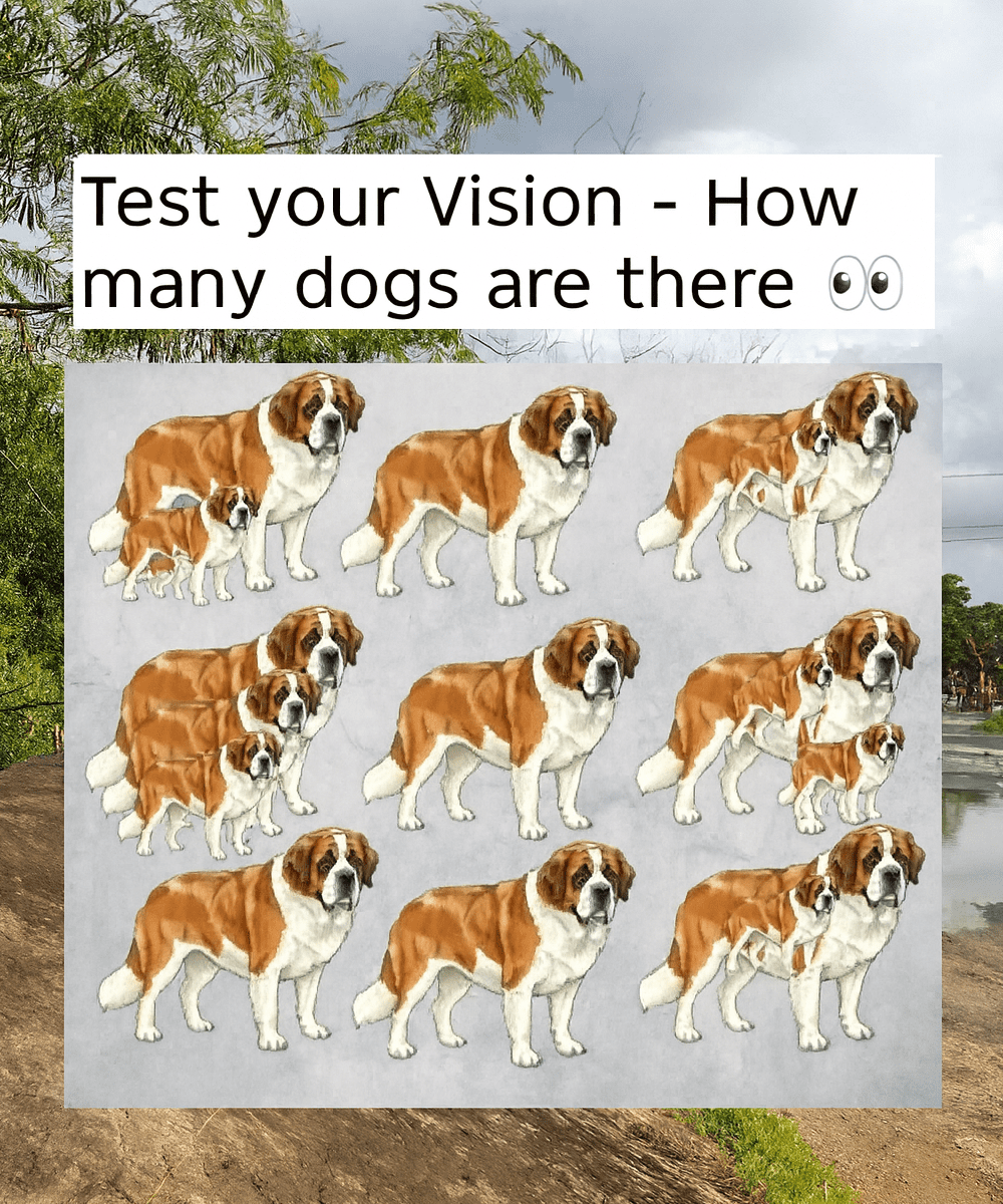 At first glance, this picture looks like a simple lineup of St. Bernards — nine, maybe? Most people stop counting there and move on, convinced they’ve got it right. But this image hides a clever trick.If you slow down and really look, you’ll notice extra outlines, faint shapes, and overlapping figures that aren’t obvious at first sight. Some dogs are partially merged into others, while a few are almost camouflaged into the background — just enough to test your attention to detail.