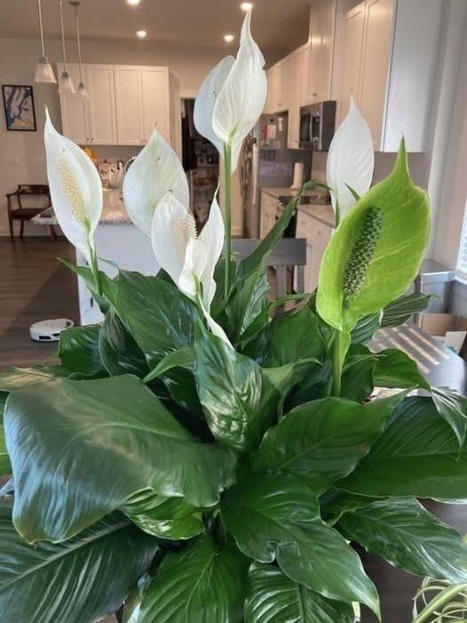 But because, when that pure white spathe (the elegant “flower”) rises above the lush green leaves, it feels like a nod of approval from your plant.